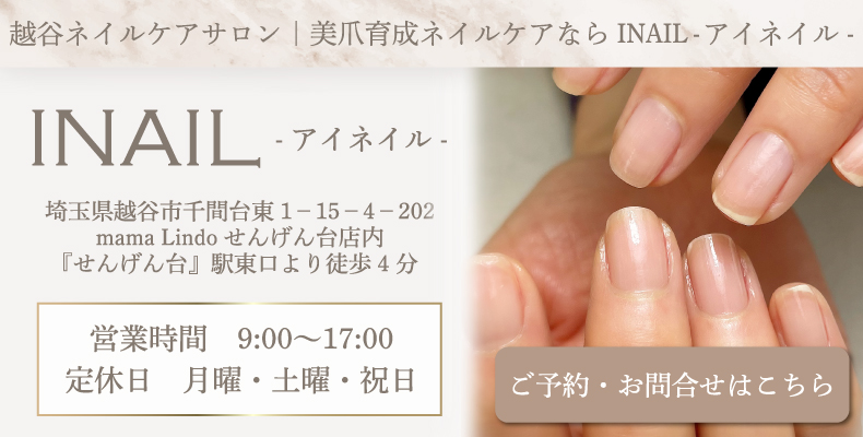 越谷市にあるネイルサロン、INAILの加藤奈津子さんは、爪のコンプレックスを解消するネイルケアを提供してくださいます♪